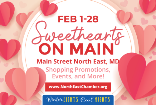 We’re feeling the love in the scenic town of North East, MD. Join us on Main Street on Friday, February 10th from 5-7pm for a 2nd Friday event. This is a Rain (Snow) or Shine