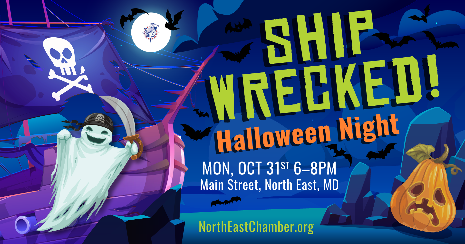 Join us on Main Street in North East, Maryland for a pirate-themed Halloween Celebration! On Halloween Night, Monday, October 31 from 6–8pm we’ll have trick-or-treating, live music, a pirate ship on “The Green” (by the Santa House), and more! After the main event, we encourage everyone wearing a pirate costume to meet at the pirate ship on the Green at 8:15pm for a special photo op – ESPECIALLY all of the town merchants!! Participating Merchant Locations: Details Coming… THANK YOU SPONSORS! This event is sponsored by: The North East Chamber of Commerce (more coming soon!) Also! For those on Facebook, we made an Event Listing HERE:...