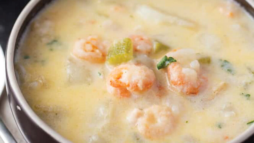 - Reduce heat to medium low and add in milk and shrimp. Heat for about 5 to 7 minutes.